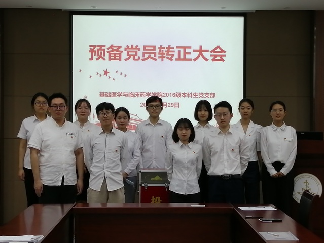 “敬爱的党组织,我是来自临床药学专业165036班的程斌,2019年9月30日经党组织批准,我光荣的成为一名中国共产党预备党员,现预备期已满一年,今天,我郑重向支部党组织提出入党转正申请,申请成为一名中国共产党正式党员!”