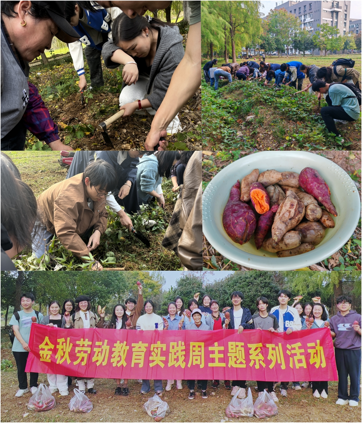 劳动教育实践田里,由学院2024届毕业生亲手种下的红薯如今已硕果累累,喜迎丰收。活动现场,2024级新生们在后期服务集团杨顺英阿姨的指导带领下,拨藤蔓,挥铲子,一个个色泽鲜亮、圆润饱满的红薯破土而出。同学们干的热火朝天,还不时传来发现大红薯的欢呼声。待红薯收获完毕后,同学们按照基建后勤处陈嘉裔老师的指导,开始了种蚕豆环节,大家将一颗颗蚕豆种子埋入土中,用脚轻轻踩实,又一次种下了希望和期待。劳动结束后,同学们还在食堂师傅的指导下制作了烤红薯,共享这份劳动的甜蜜果实。