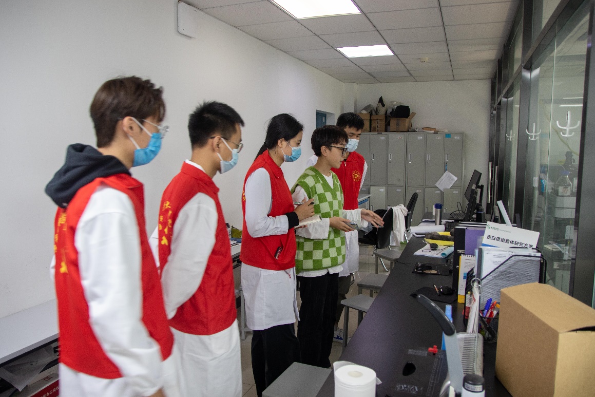 活动前,辅导员陈成与党员先锋队成员们在医学楼102会议室开展主题活动座谈,陈成老师围绕实验室安全工作强调要始终把安全放在第一位,对危险化学品和易燃易爆物严格管理,加强消防安全和个人防护问题培训,坚决杜绝侥幸心理,减少安全隐患。党员先锋队胡源晖同学介绍活动流程并对实验室安全检查进行全面培训。随后,先锋队员们走进学院各实验室,从试剂储存、废液处理、通风装置、防护措施、消防安全等各方面进行了安全检查。同学们一致认为,加强实验室安全管理,必须要强化个人安全意识与责任担当,严格遵守实验室安全规章制度。