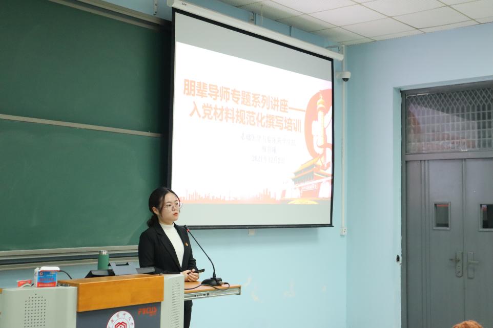 为了保证党员发展质量,规范化撰写入党材料,近日,英国上市公司官网365举办朋辈导师系列活动之入党材料规范化撰写专题培训会。培训会由临药领航新青年·党员先锋队成员相羽曦同志主讲,学院辅导员老师到场指导,公司全体预备党员、发展对象和入党积极分子参会。